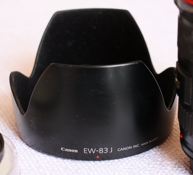 - Originál sluneční clonu Canon EW-83J, která je na APS-C mnohem účinnější, než přiložená.